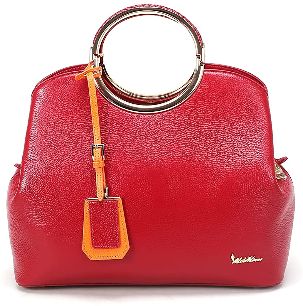 An Essence Of Elegant To Act Like: ‘I Am Rockstar!’ A Premium Option For Profound Personality. Meminoo Presents A Perfect Partner For Your Luxurious Lifestyle. It's A Red Leather Sensational Charm, With An Outer Zipper And An Inner Zipper, Two Void Passages, Woven Leather Metal Frame Handles, Small Zipper Pocket At Back, Leather Belt Shoulder Hanging, Orange Leather Tag & Branded With Metal Logo At Bottom.