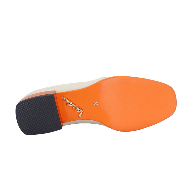 A Figure Of Felicity To Claim: ‘I Am Fun!’ Me Minoo’ Presents A Lavish And Comfortable Customized Shoe. The Best Option For Regular Use. It’s A High Quality White Leather Shoe, Featuring A Semi Square/Oval Toe With White Shoe Lace, Cushioned Inner Sole, Mid Block Heel, Branded In Sole, Highly Recommendable.